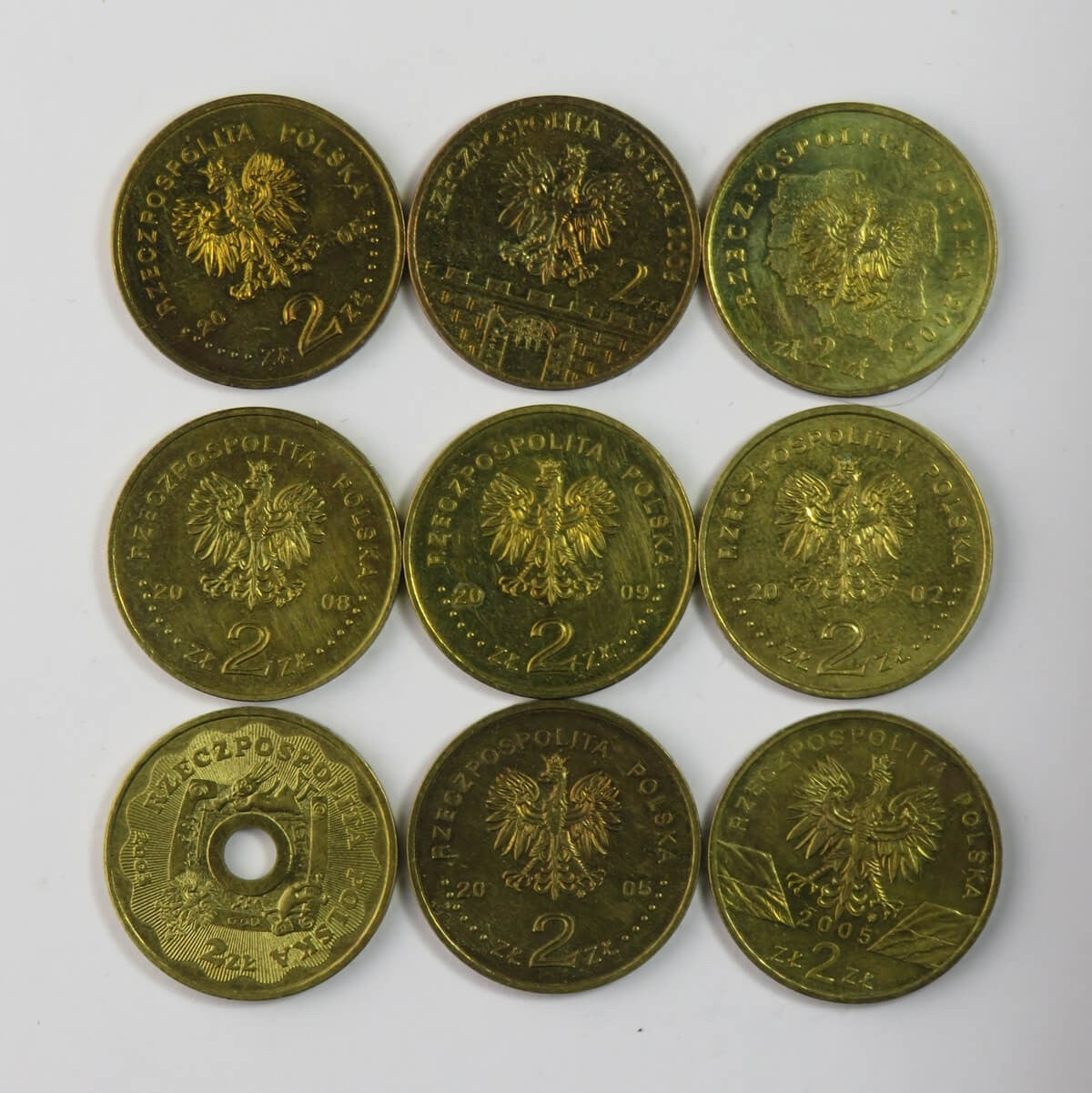 2 zł GN, zestaw 9 sztuk, różne roczniki, stany 1-/2+, nalot