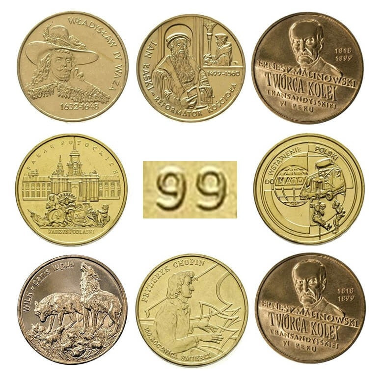 Komplet monet 2 zł z roku 1999