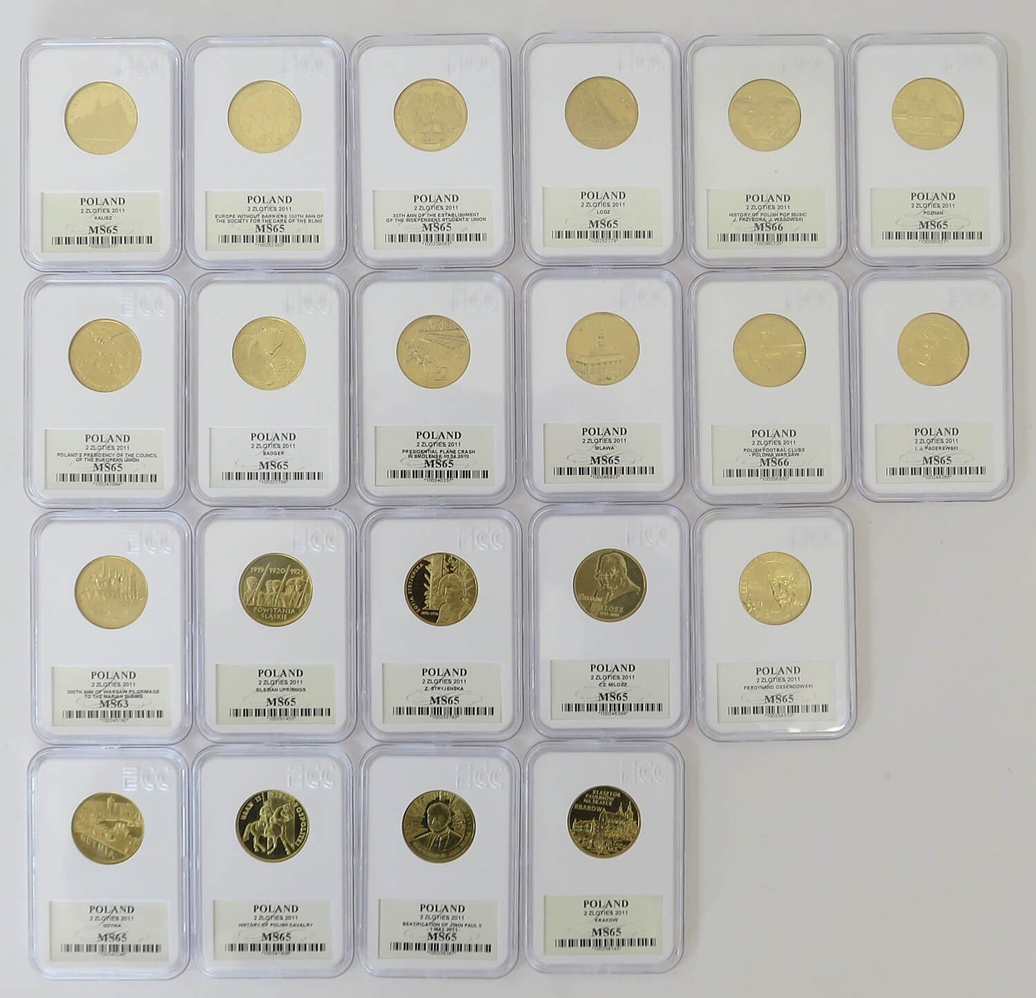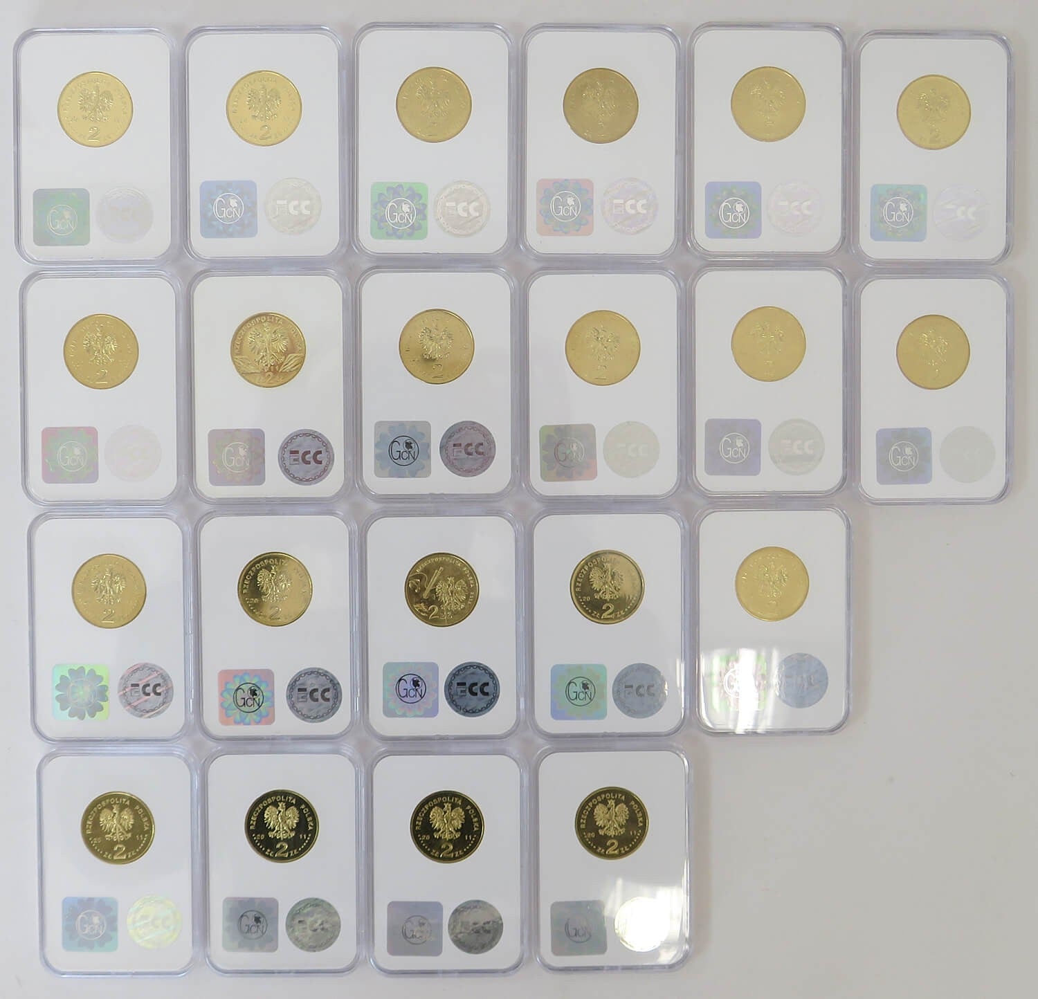 Pełny komplet 21 monet 2 zł GN rocznik 2011, grading GCN MS65-MS66, mennicze