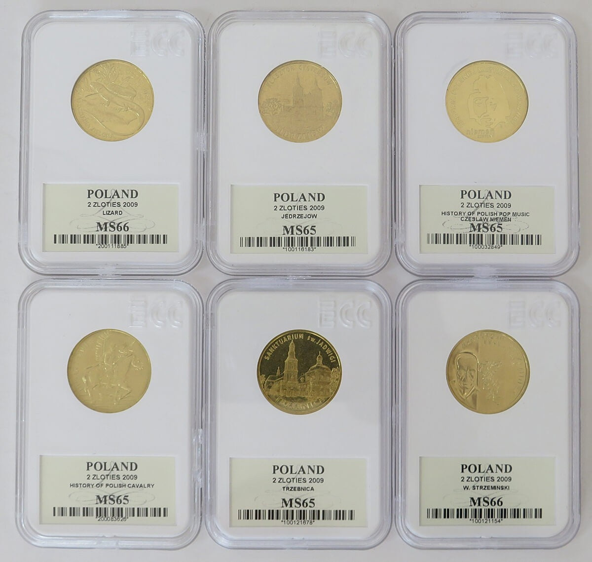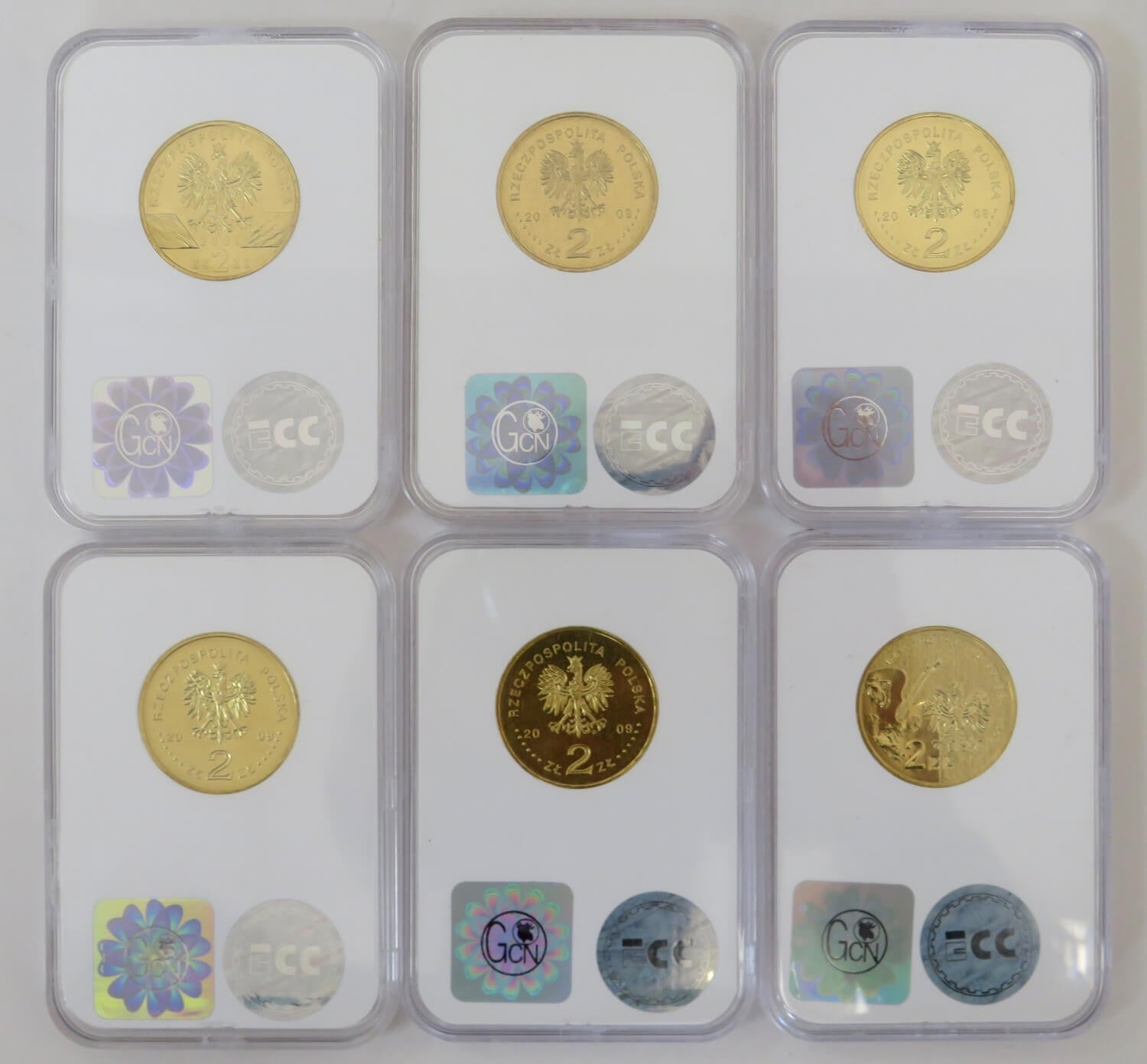 Zestaw 6 monet 2 zł GN rocznik 2009, grading GCN MS65-MS66, mennicze